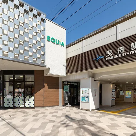 Un angolo cottura attrezzato dell'appartamento Mat Hikifune include un frigo e un piano cottura. La stazione ferroviaria di Hikifune è a soli 350 metri. Questo alloggio vanta un patio.